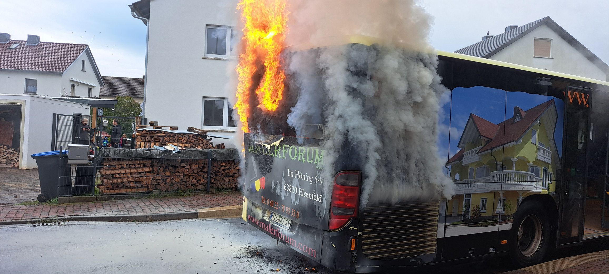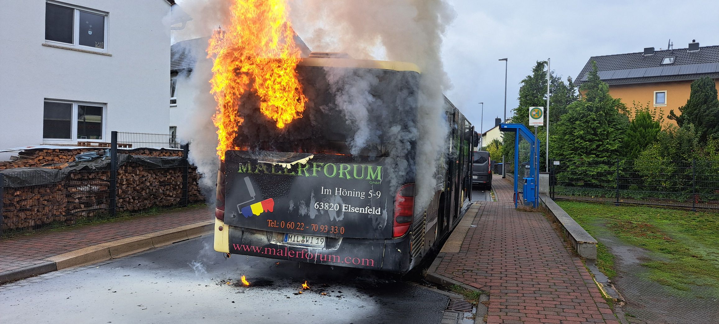 Gegen 16:10 Uhr wurden wir mit dem Stichwort B2 – LKW / Bus innerorts zu einem brennenden Bus alarmiert. Vor Ort begannen wir sofort unter Atemschutz mit den Löscharbeiten.